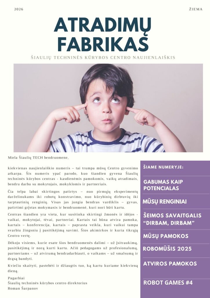 Kviečiame susipažinti su naujuoju Šiaulių techninės kūrybos centro naujienlaiškio „Atradimų fabrikas. Žiema 2026“ numeriu.