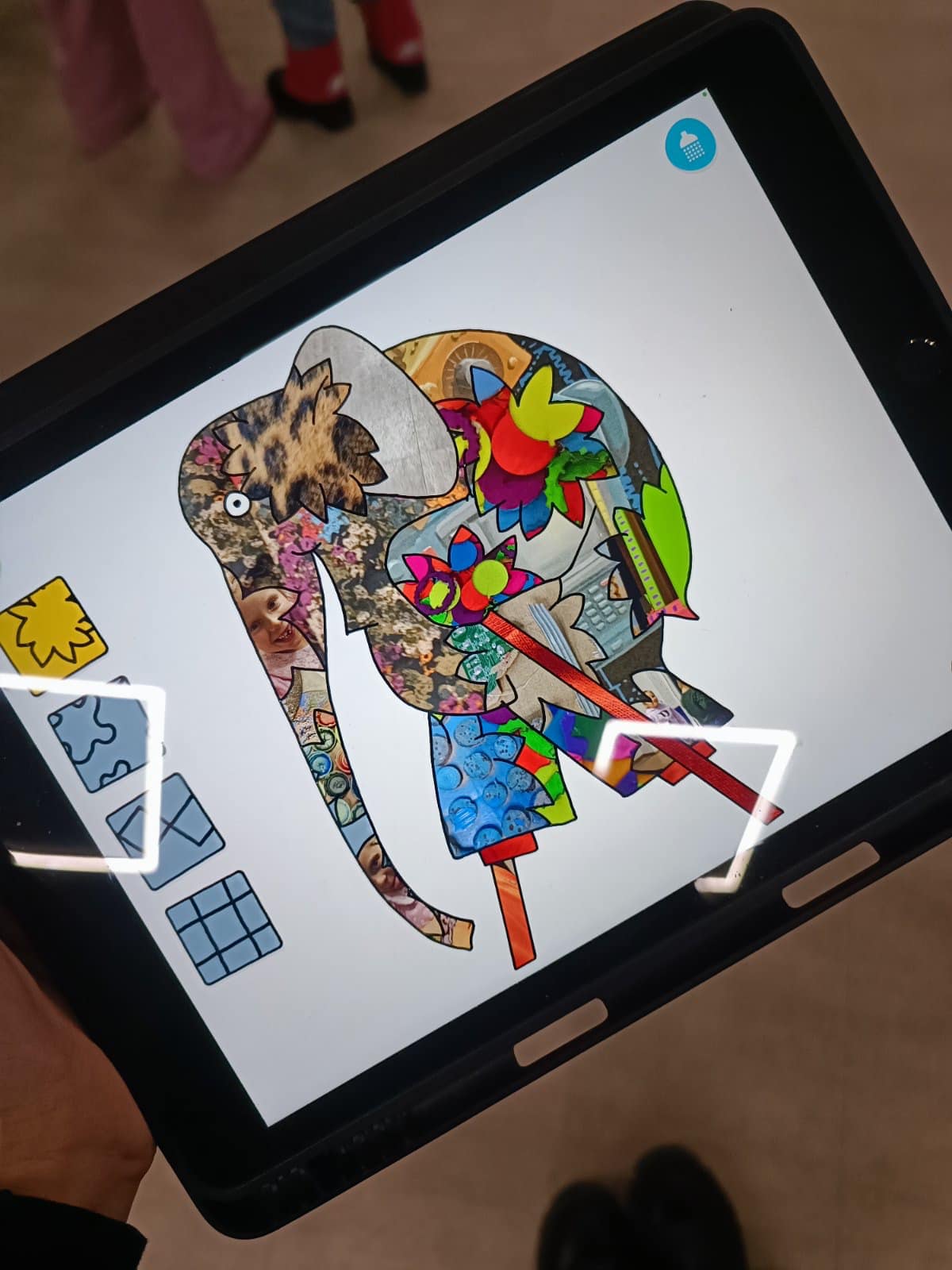 Praktinės dalies metu pasitelksime „Elmer’s Photo Patchwork“ programėlę ir kursime savo unikalų drambliuką.