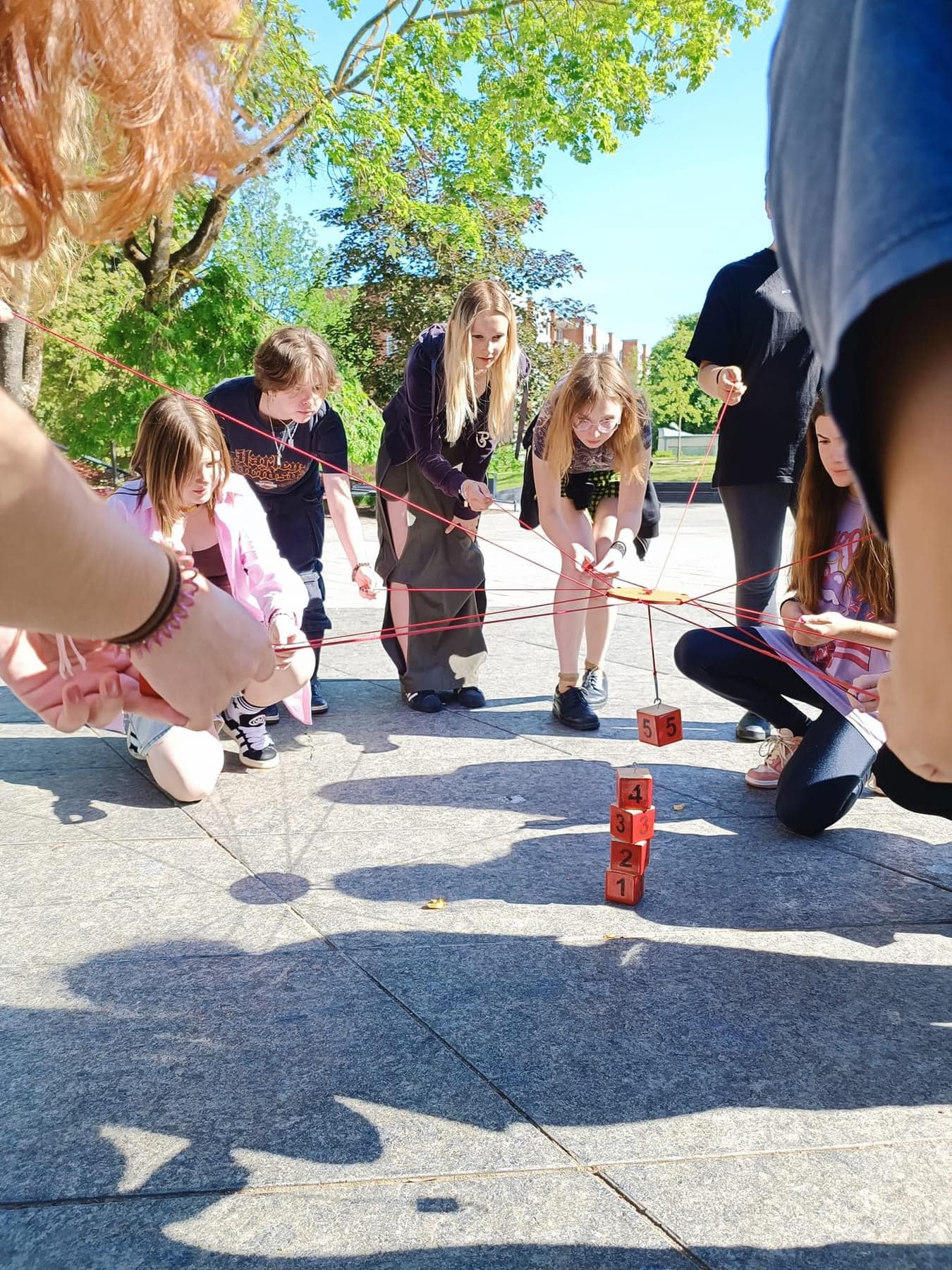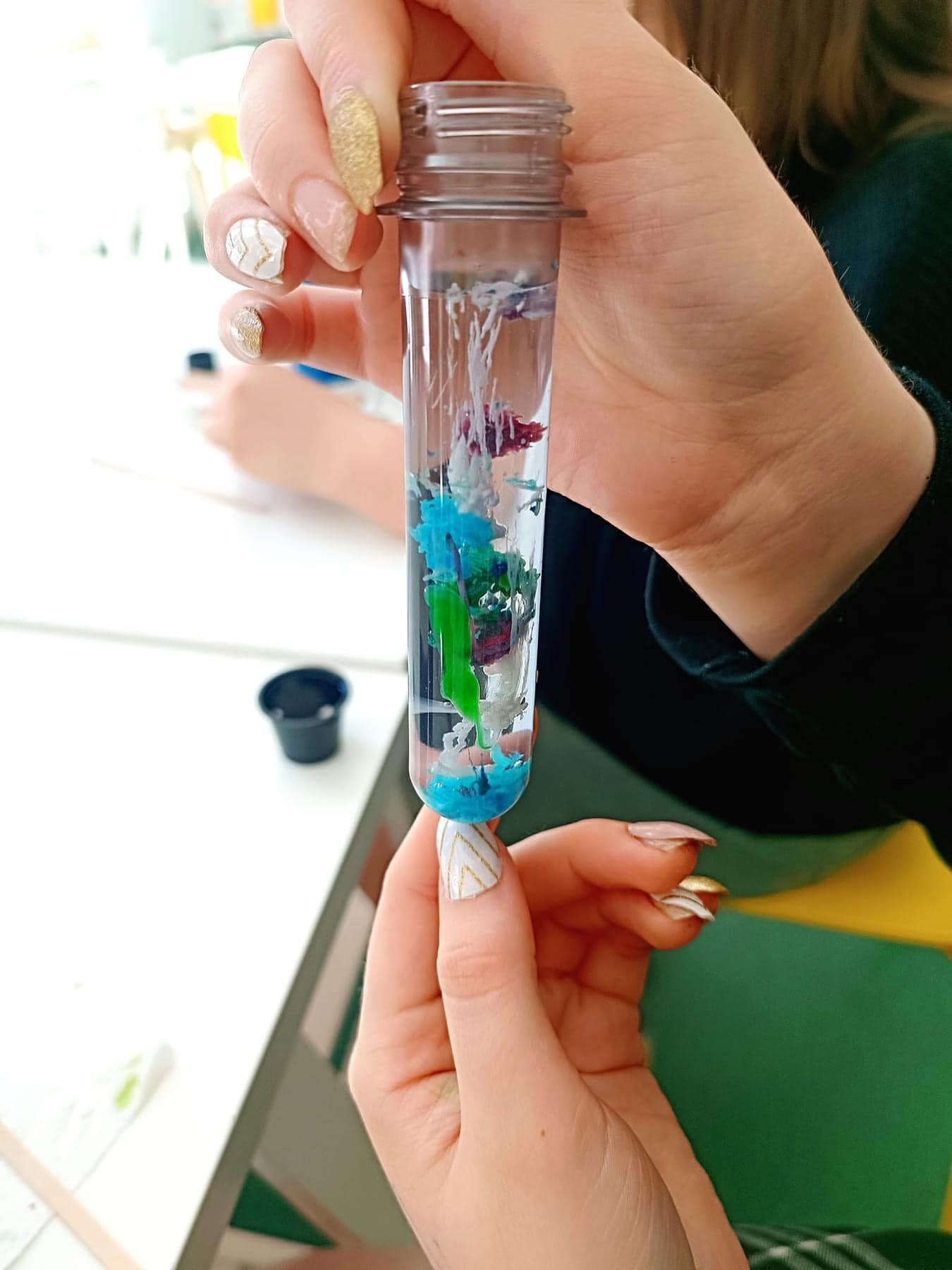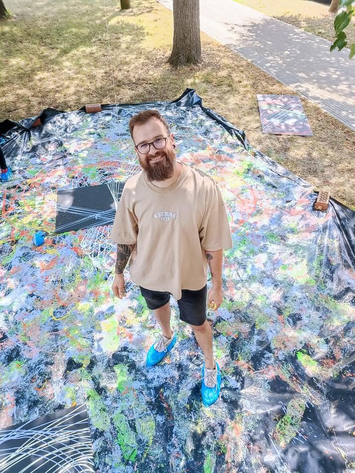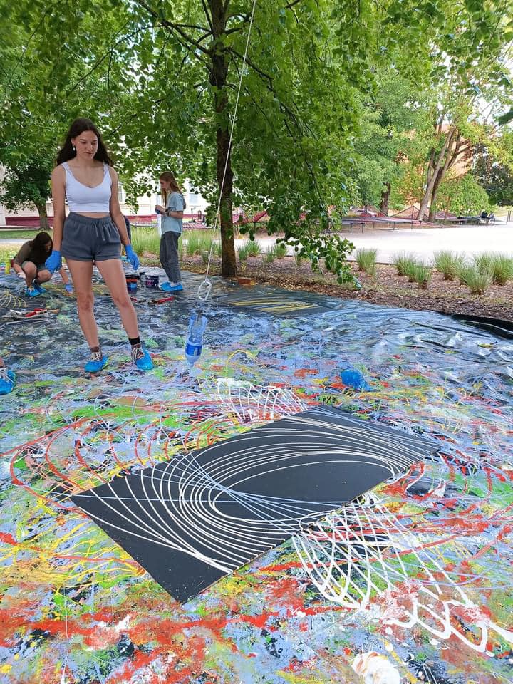Norėdami parodyti dalyvėms kaip menai dera su STEM, organizavome kūrybines dirbtuves, kurių metu merginos susipažino su švytuoklinio tapymo principais ir išbandė šią techniką tapant didelio formato paveikslus. Švytuoklinis tapymas yra technika, kurioje naudojamas svyruojantis daiktas, kad dažai būtų liejami sudėtingais raštais. Tapant švytuokle, menininkas turi valdyti įvairius kintamuosius: švytuoklės ilgį, dažų klampumą ir švytuoklės paleidimo kampą. Kiekvienas šių elementų prisideda prie galutinio kūrinio unikalumo, todėl kiekvienas tapymo procesas yra nepakartojamas. Menininkas, manipuliuodamas šiais veiksniais, gali sukurti įvairius raštus – nuo simetriškų geometrinių figūrų iki dinamiškų, beveik chaotiškų linijų ir formų.