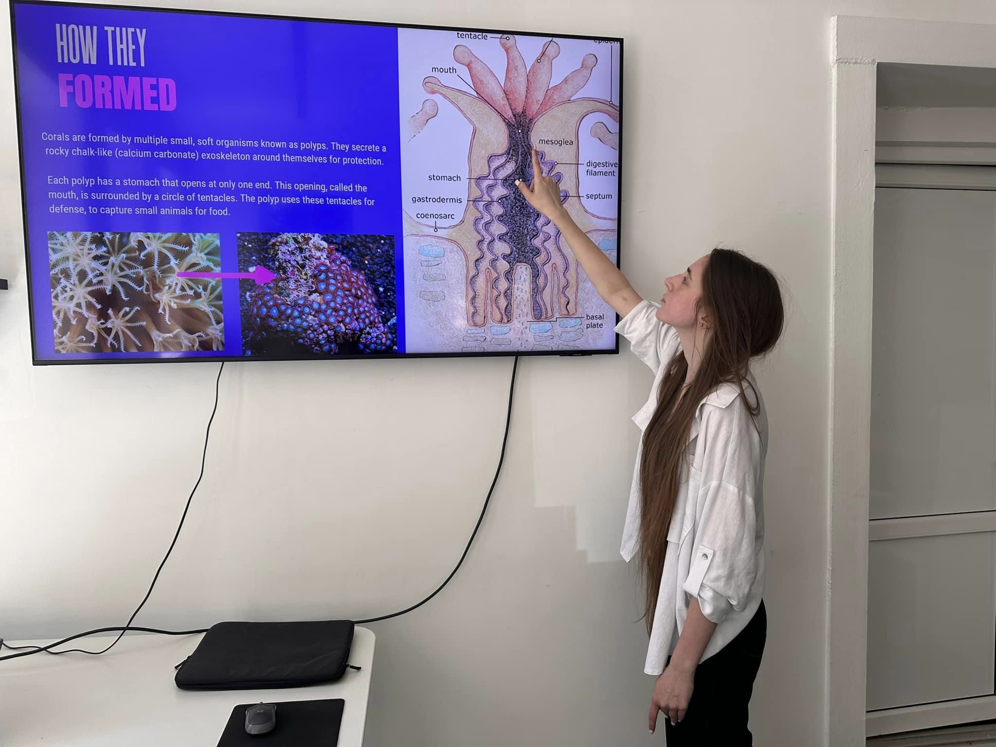 Jaunimo metu dėmesį skyrėme ir pasaulio ekologijos problemoms. Laboratorinio darbo metu merginos sužinojo, kad koralinius rifus formuoja smulkūs, sėslūs, kolonijomis gyvenantys medūzų giminaičiai – koraliniai polipai. Kiekvienas polipas turi savo išorinį kalcio karbonato skeletą, todėl bendra šių polipų kolonija – koralinis rifas – yra pakankamai tvirta, uolieną primenanti struktūra. Koraliniai rifai būdingi šiltoms, saulėtoms Žemės vietoms ir yra randami sekliame jūros vandenyje, kur patenka daug saulės šviesos. Jaunimo mainų dalyvės sužinojo, kaip rifai saugo pakrantes nuo erozijos, ir aptarė iššūkius, su kuriais susiduria koralų ekosistemos. Koralinių rifų nykimas siejamas su klimato kaita ir vandenyno vandens rūgštingumo didėjimui. Vietos gyventojų veikla (žvejyba, tarša, pakrantės urbanizacija) taip pat žaloja koralinius rifus. Laboratorinio darbo metu merginos kūrė „cheminius sodus“ iš įvairių druskų ir stengėsi atkartoti gamtos reiškinį – koralinius rifus. Taip pat merginos mokėsi gaminti aliejinius kvepalus naudojant eterinius ir bazinius aliejus. Veiklos metu jos sužinojo apie kvepalų istoriją ir gamybos metodus, taip pat išmoko derinti skirtingus aliejus, kad sukurtų savo unikalius kvapus.