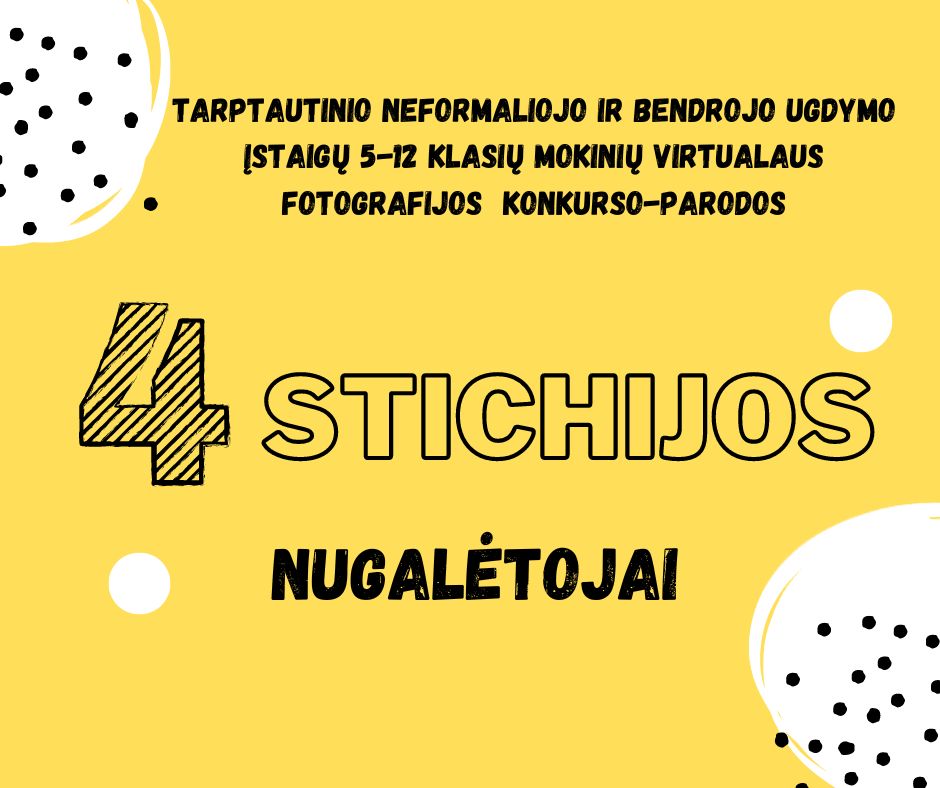 Skelbiame Tarptautinio neformaliojo ir bendrojo ugdymo įstaigų 5-12 klasių mokinių virtualaus fotografijos konkurso-parodos „4 STICHIJOS“ nugalėtojus.