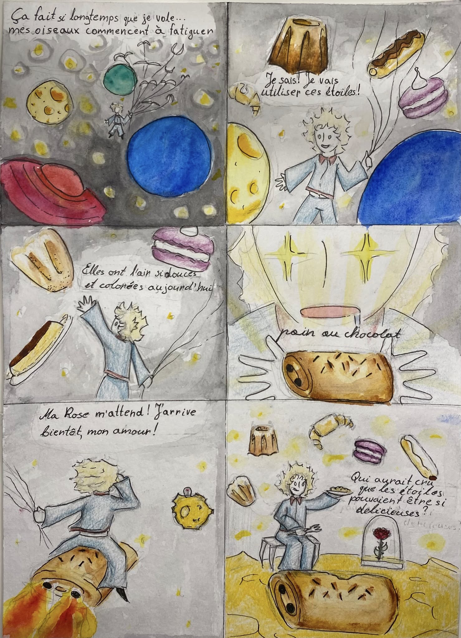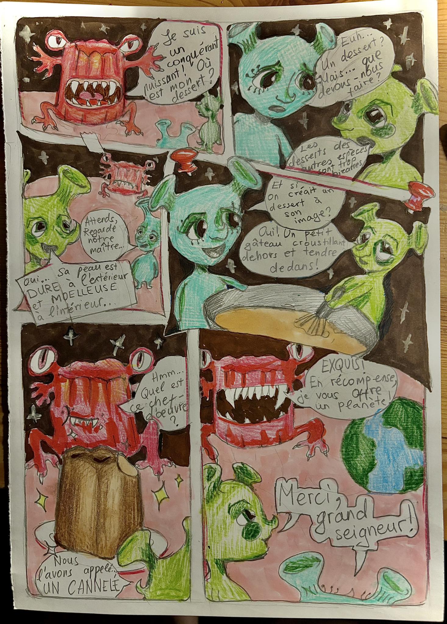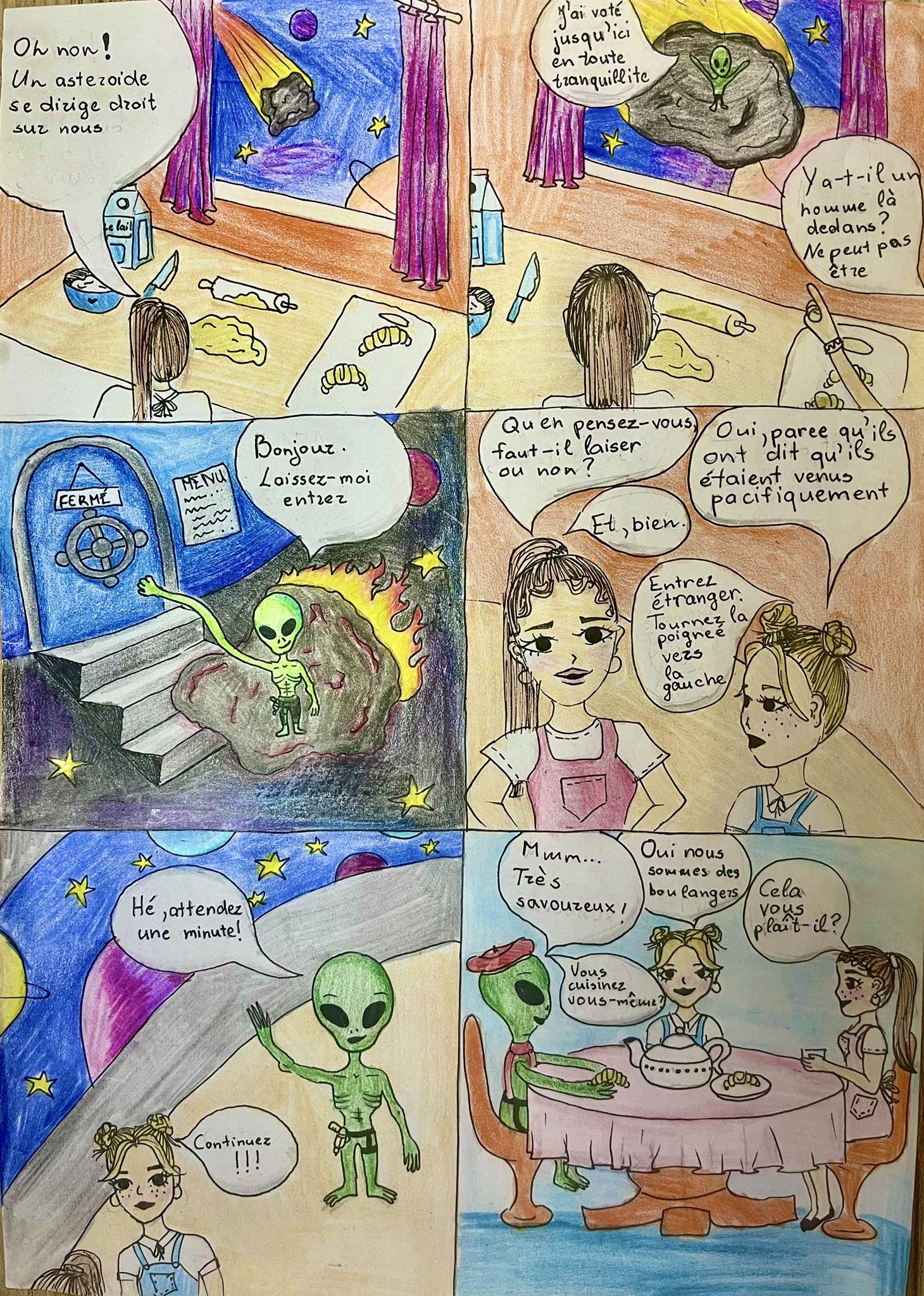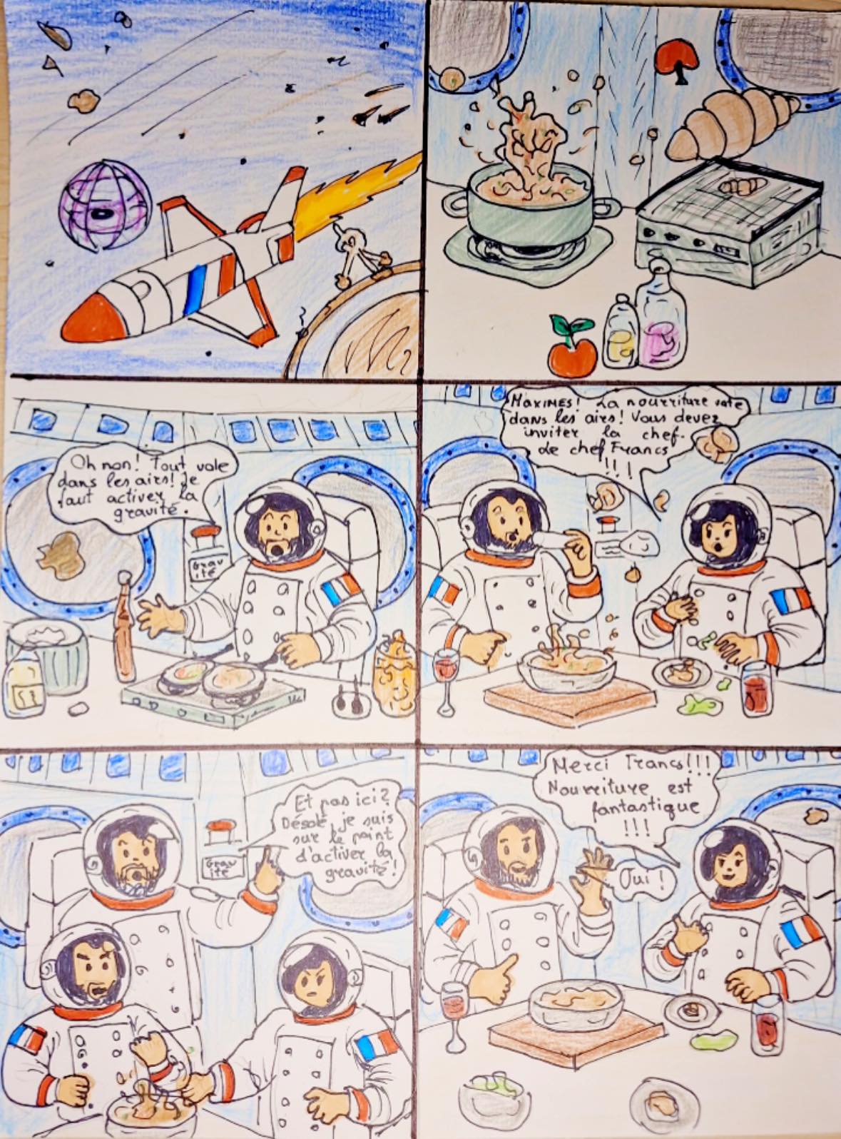 Konkursas kvietė 6–10 klasių mokinius pasitelkti kūrybiškumą, prancūzų kalbos žinias ir vaizduotę, kuriant komiksus apie netikėtas kulinarines situacijas kosminėje erdvėje. Konkursiniai darbai stebino ne tik temų įvairove, bet ir originaliais sprendimais bei puikia prancūzų kalba. Mokinių darbuose susipynė humoras, fantastika ir gastronomija – nuo svyruojančių beze debesų iki išsiveržusio skysto azoto.