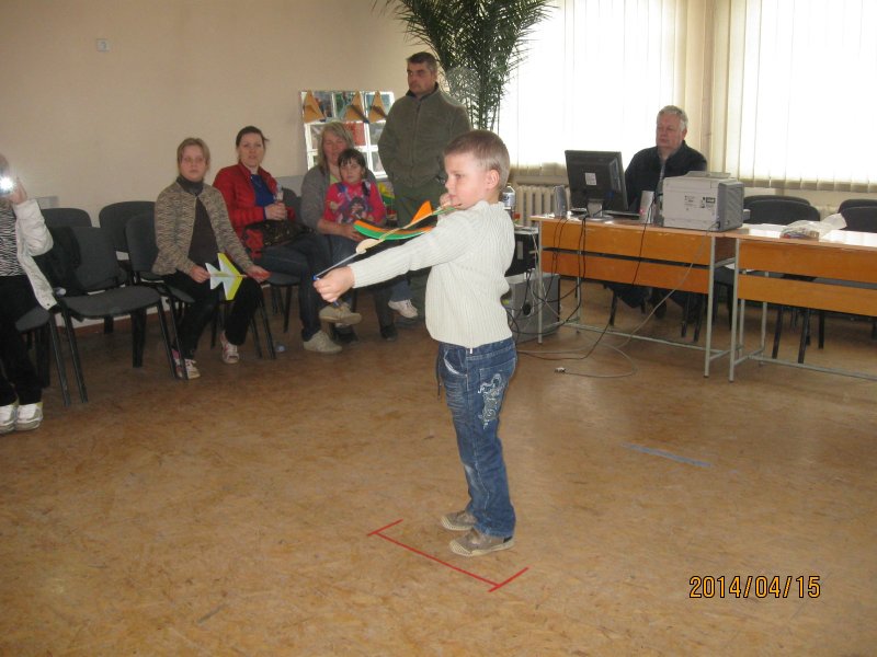 Varžybose dalyvavo jaunieji aviamodeliuotojai (7- 14 metų) iš Mažeikių, Šiaulių raj., Šiaulių m. (Jaunųjų technikų centro). Viso: 22 dalyviai. Modeliuotojai rungėsi trijose rungtyse: skraidino modelius į taikinį ranka (I-asis modelis), varomus gumos varikliu (II-asis modelis) ir gumine laidyne (III-asis modelis). Dalyviai pagal amžių buvo suskirstyti į dvi grupes: jaunesniųjų ( iki 11 metų), vyresniųjų (iki 14 metų). 2014-04-15 Rezultatai