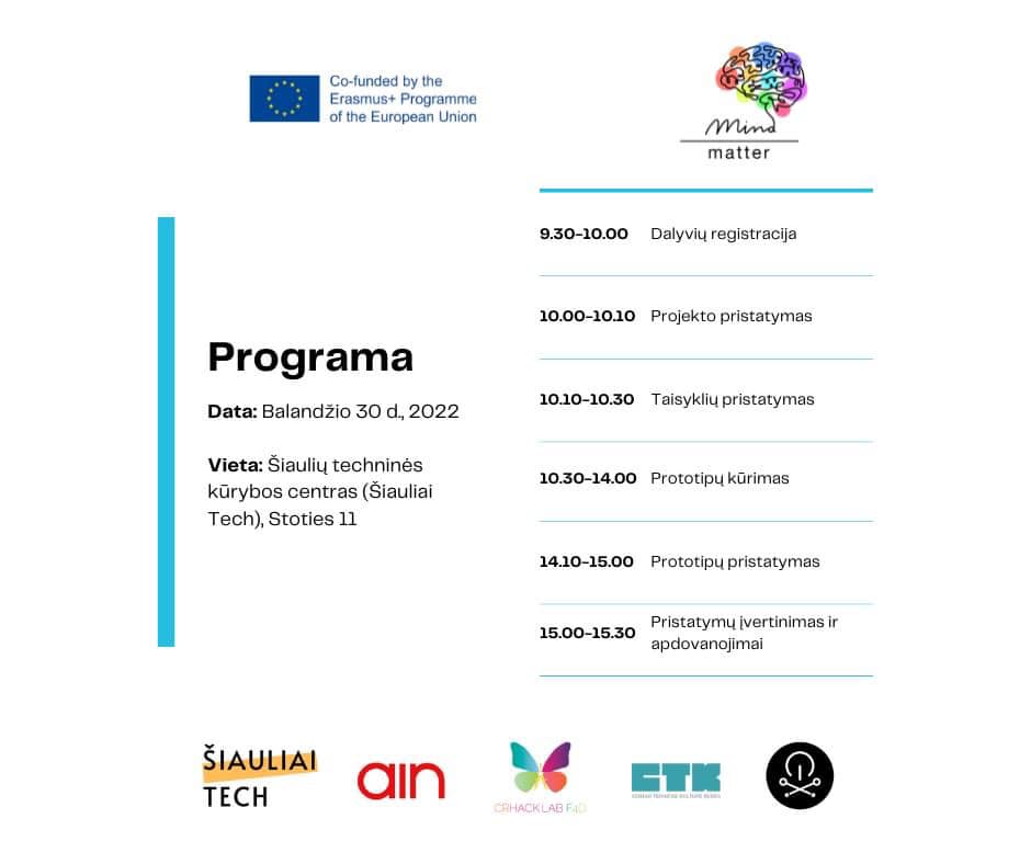Kviečiame Šiaulių m. ir rajono švietimo įstaigų 13-18 m. mokinius dalyvauti Mind over Matter makeathon’e.