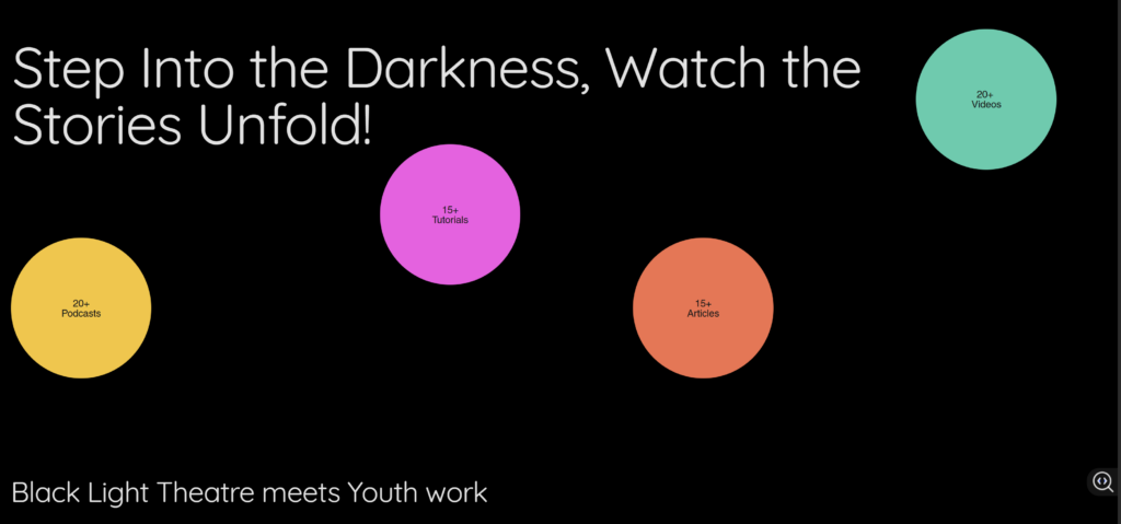Svetainė sukurta vykdant Erasmus+ programos projektą „Out the Shadow: A Black Light Theatre Project for Social Inclusion“. Tai trejų metų trukmės tarptautinė iniciatyva, kurios pagrindinis tikslas – suteikti jaunimo darbuotojams, mokytojams ir edukatoriams praktinių įrankių, padedančių taikyti Black Light Theatre metodiką darbe su jaunimu, ypač su tais, kurie susiduria su socialine atskirtimi.