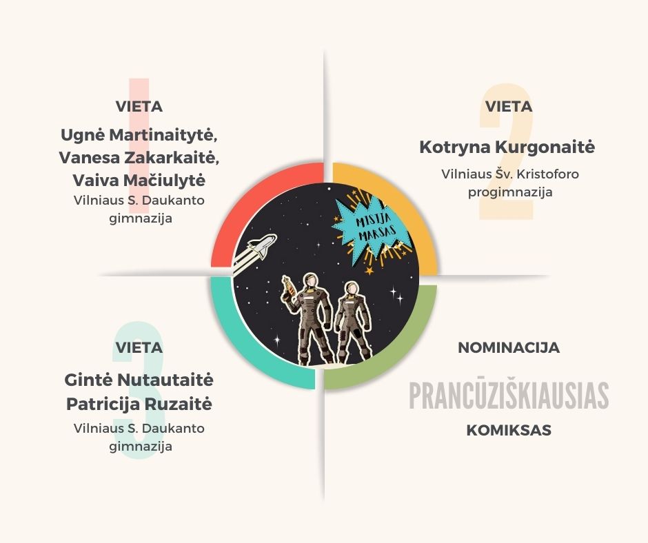 SKELBIAME RESPUBLIKINIO NEFORMALIOJO IR BENDROJO UGDYMO ĮSTAIGŲ 5 – 12 KL. MOKINIŲ FANTASTINIŲ KOMIKSŲ PRANCŪZŲ KALBA VIRTUALAUS KONKURSO „MISIJA – MARSAS“ NUGALĖTOJUS.