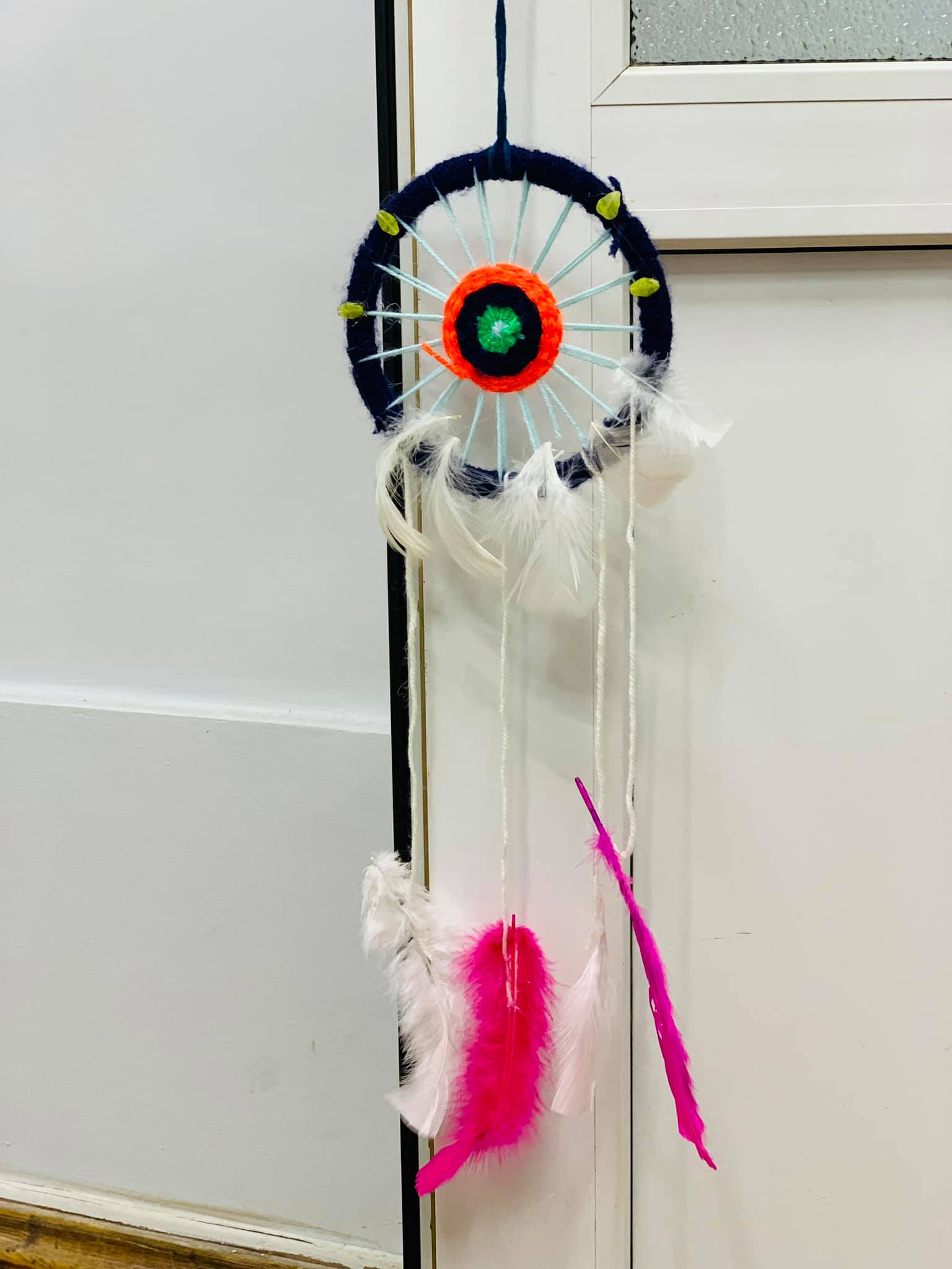 Su mokytojomis Rasa Daukšiene ir Sigita Varačinskiene kūrėme sapnų gaudykles, kurios yra ne tik jaukus ir originalus interjero akcentas. Legendos skelbia, kad šis indėnų kilmės amuletas apsaugo nuo blogų, piktų minčių ir dvasių, nemalonių sapnų, padeda greičiau užmigti ir miegančiajam siunčia ramius, spalvotus ir džiugius linkėjimus iš sapnų pasaulio.