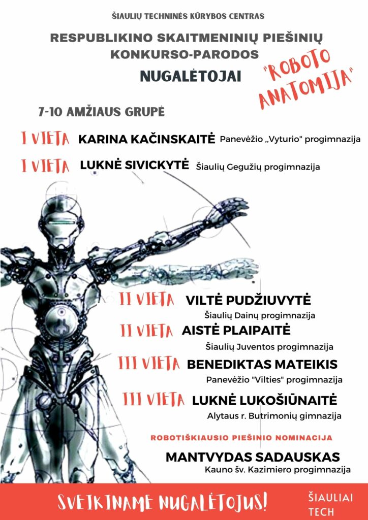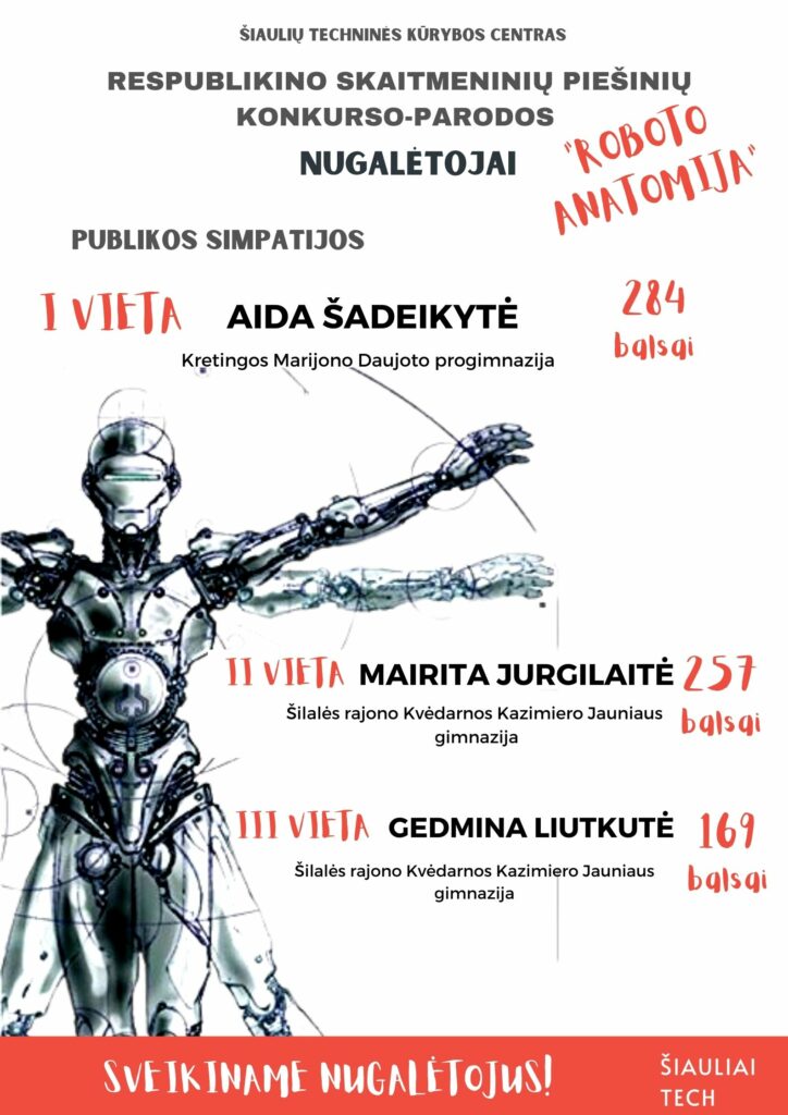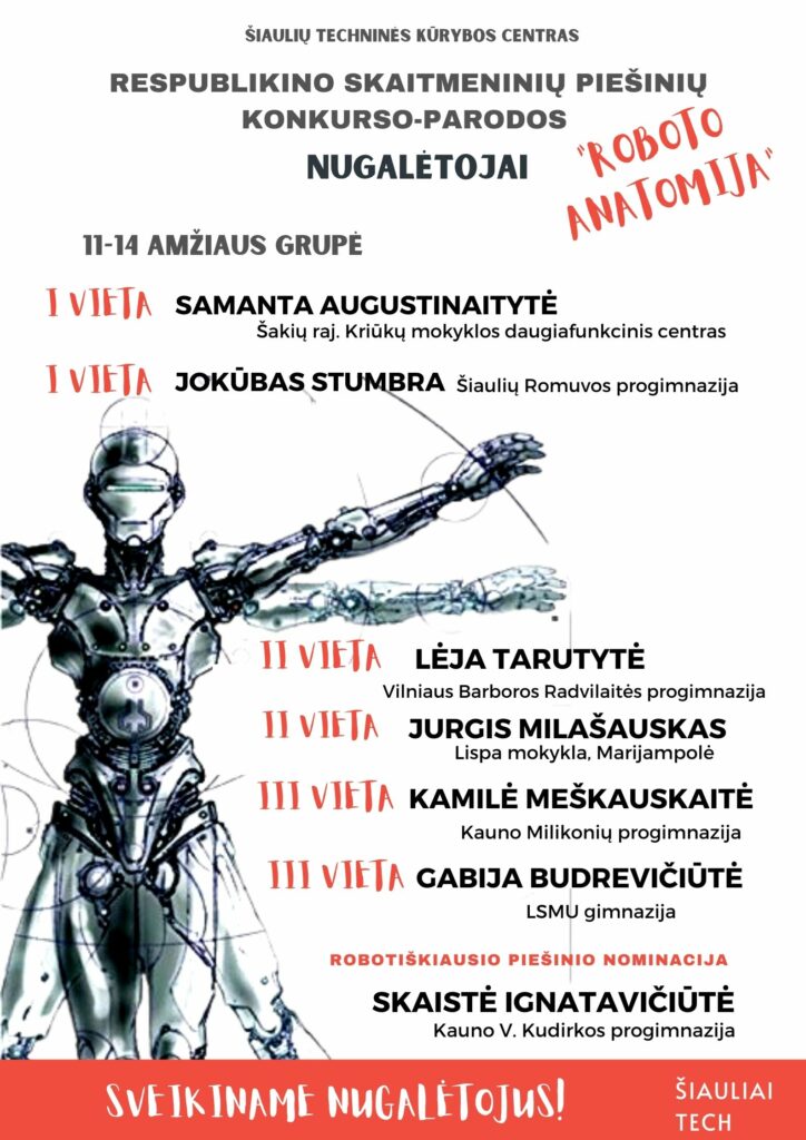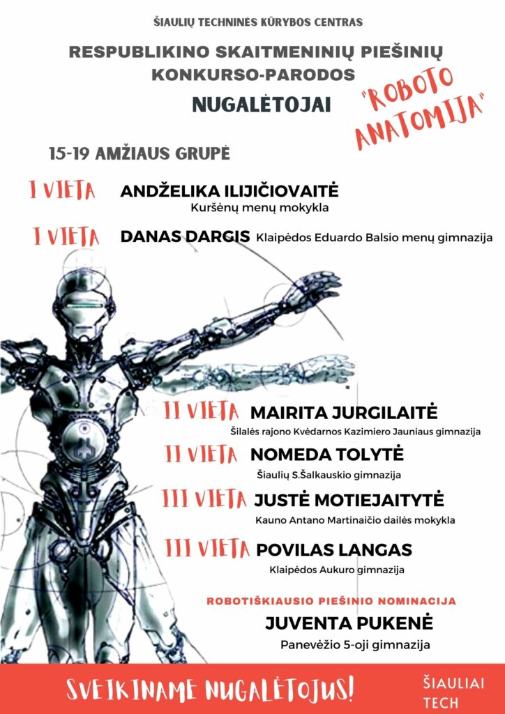 Skelbiame respublikinio neformaliojo ir bendrojo ugdymo mokinių skaitmeninių piešinių konkurso parodos „ROBOTŲ ANATOMIJA“ nugalėtojų sąrašą.