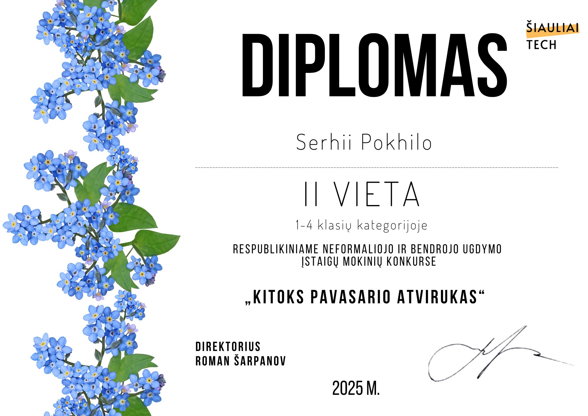 2 vieta – Serhii Pokhilo, 1B klasė, Ukmergės Senamiesčio progimnazija. Mokytoja Jolita Vaidonavičienė.