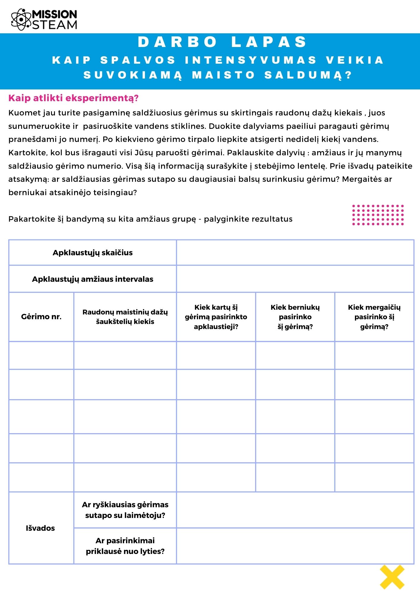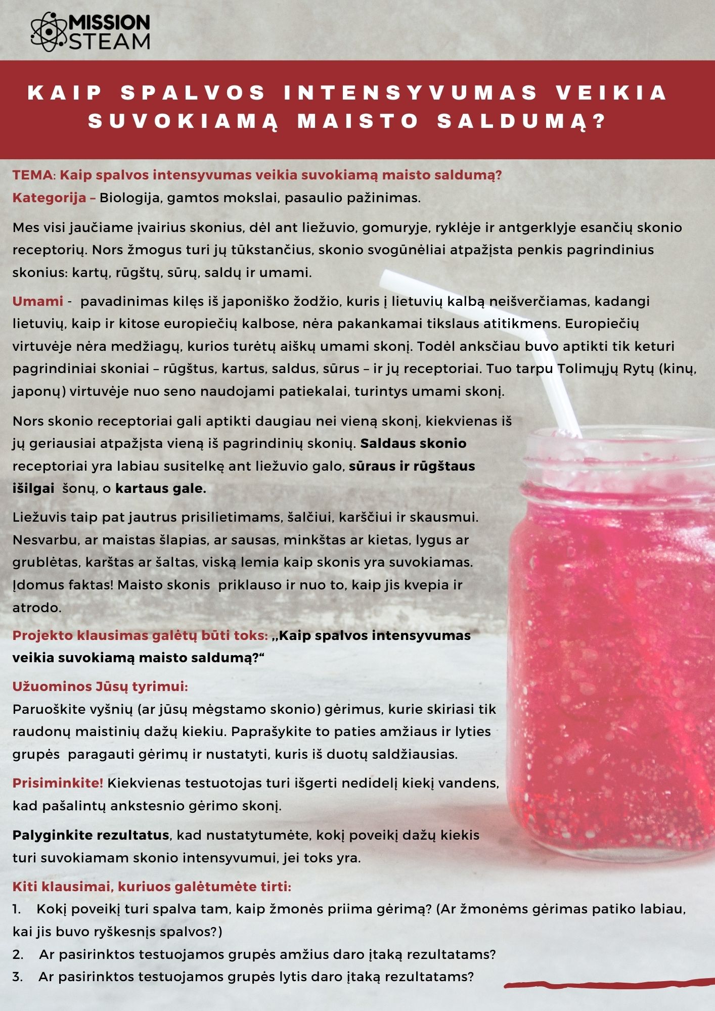 TEMA: Kaip spalvos intensyvumas veikia suvokiamą maisto saldumą?