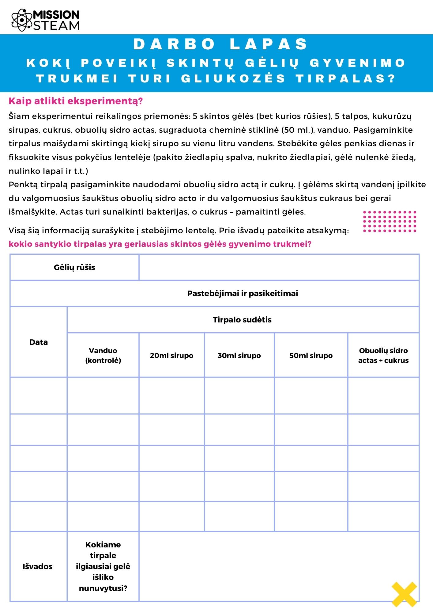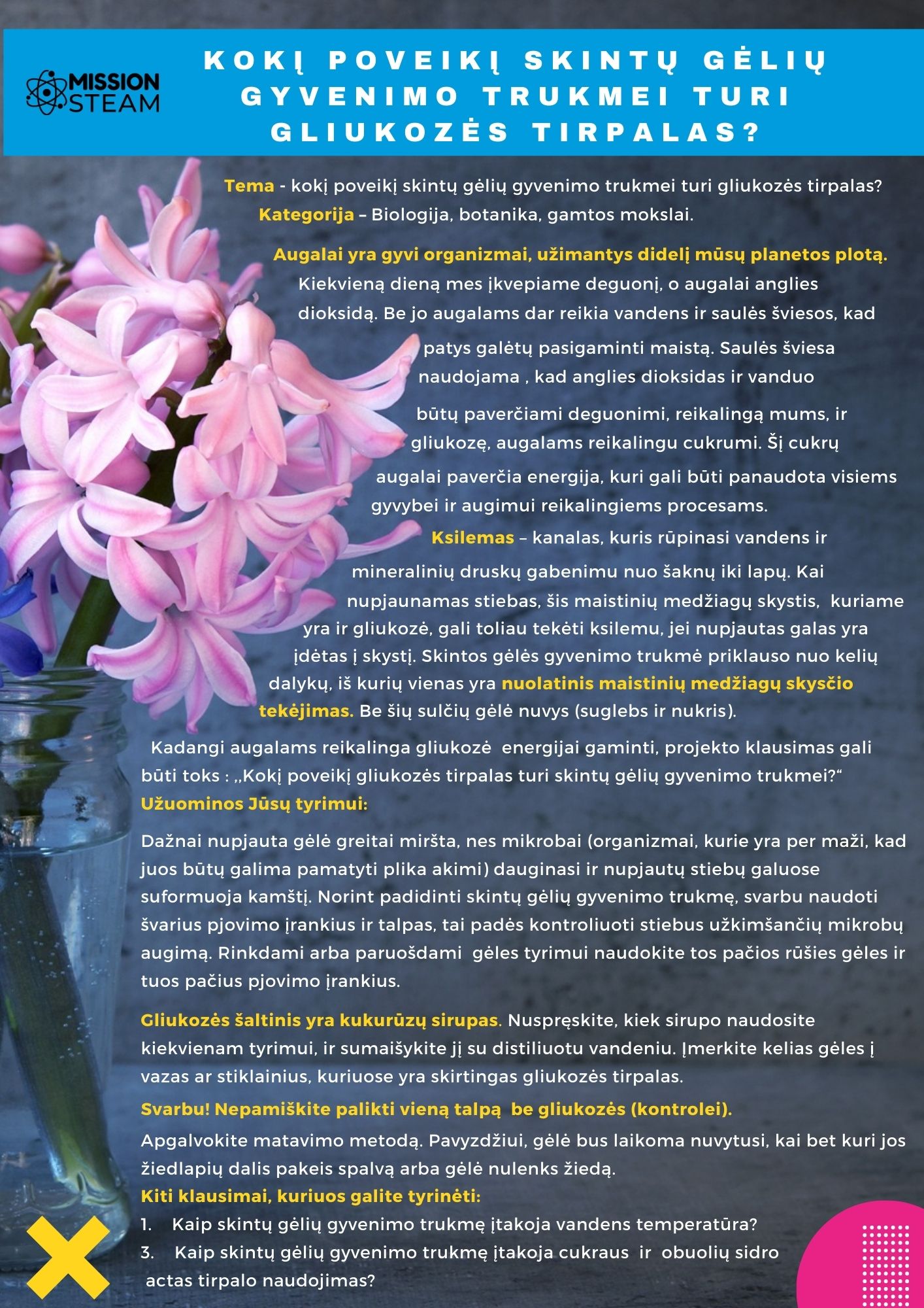 Tema – kokį poveikį skintų gėlių gyvenimo trukmei turi gliukozės tirpalas?