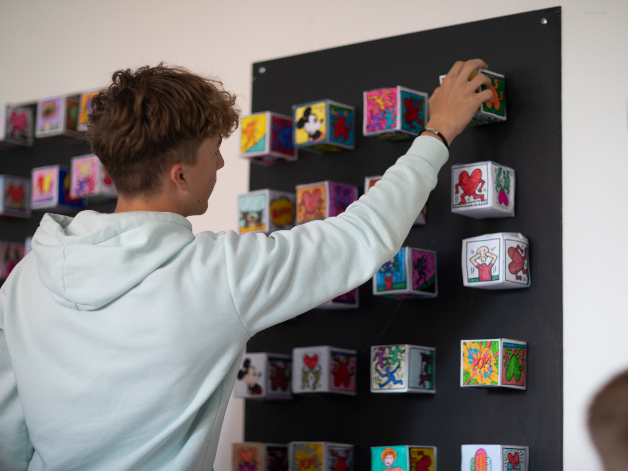 Pop Art kubų sienoje yra 180 Sandoros progimnazijos mokinių sukurtų kubų.