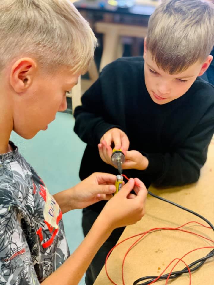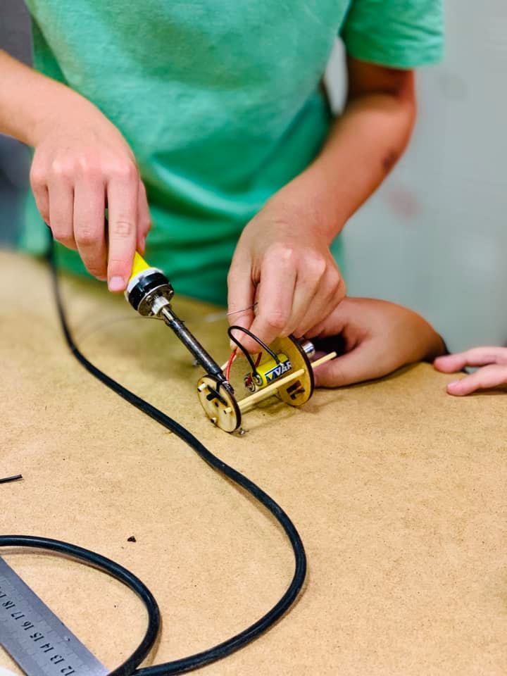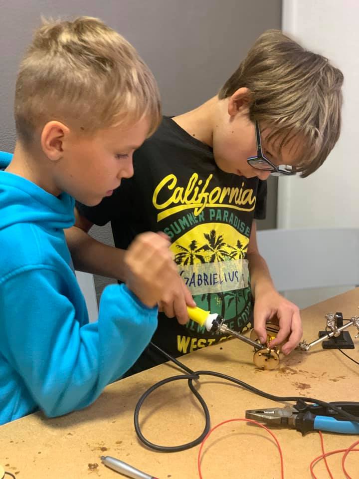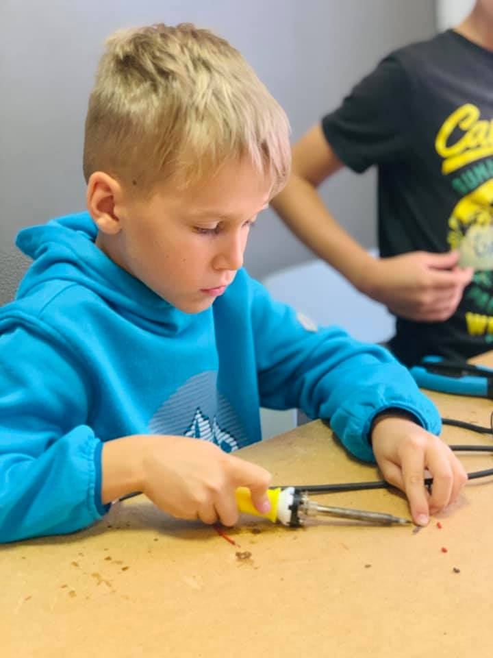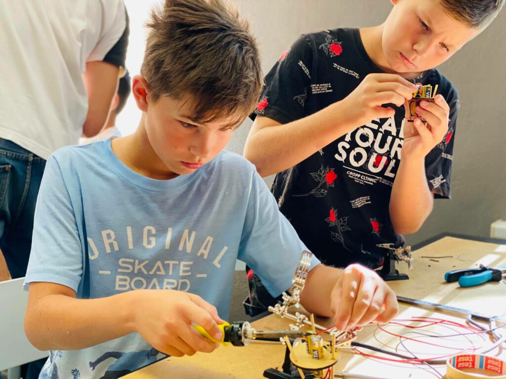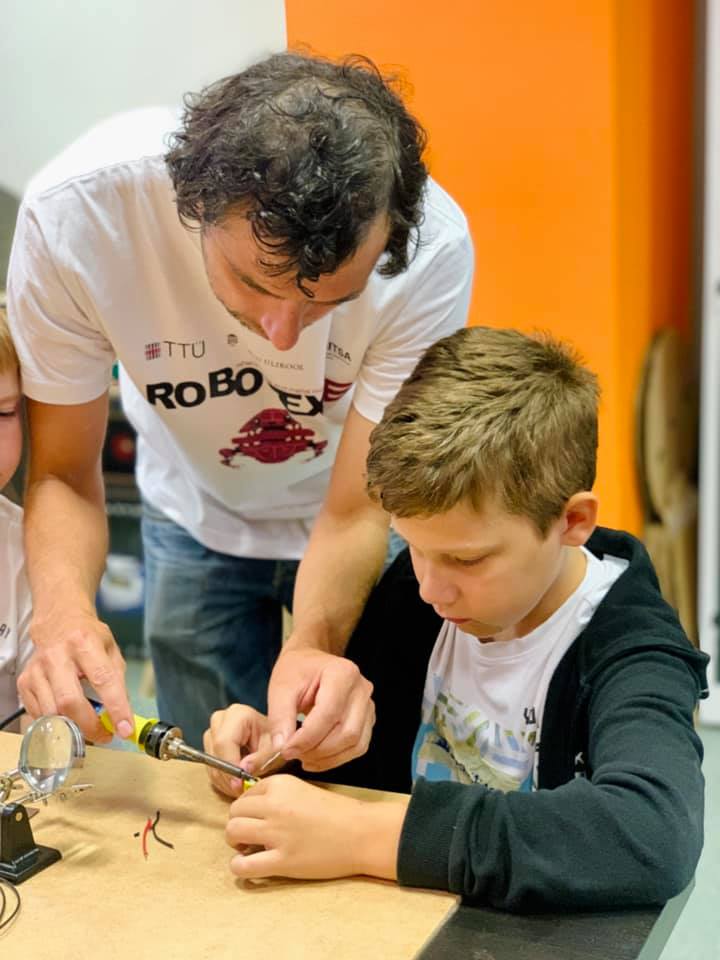 Užsiėmimo metu mokiniai sužinos, kokie pagrindiniai komponentai reikalingi norint sukonstruoti judantį mechanizmą – robotą bei kokie yra jo veikimo principai. Susipažins ir išmoks naudotis litavimo aparatu bei kitais mechaniniais įrankiais. Taip pat, žinoma, patys pasigamins po žaismingą ant 3 kojų „vaikščiojantį“ robotuką.